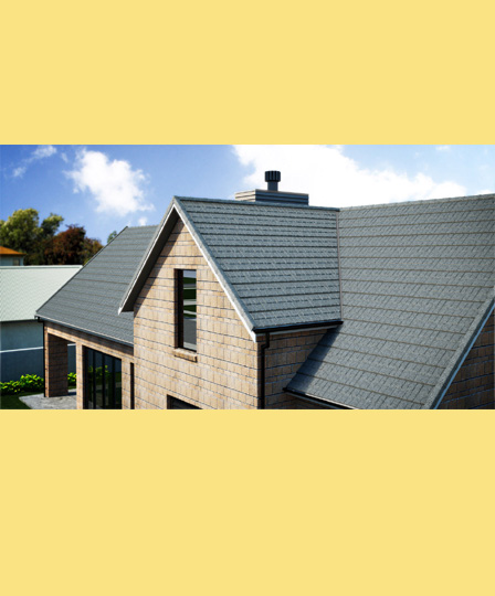 Royal tile features a textured finish in a shingle-type design. Unique in its form, this smart tiles will add interesting dimensions and shadow lines to your roof.